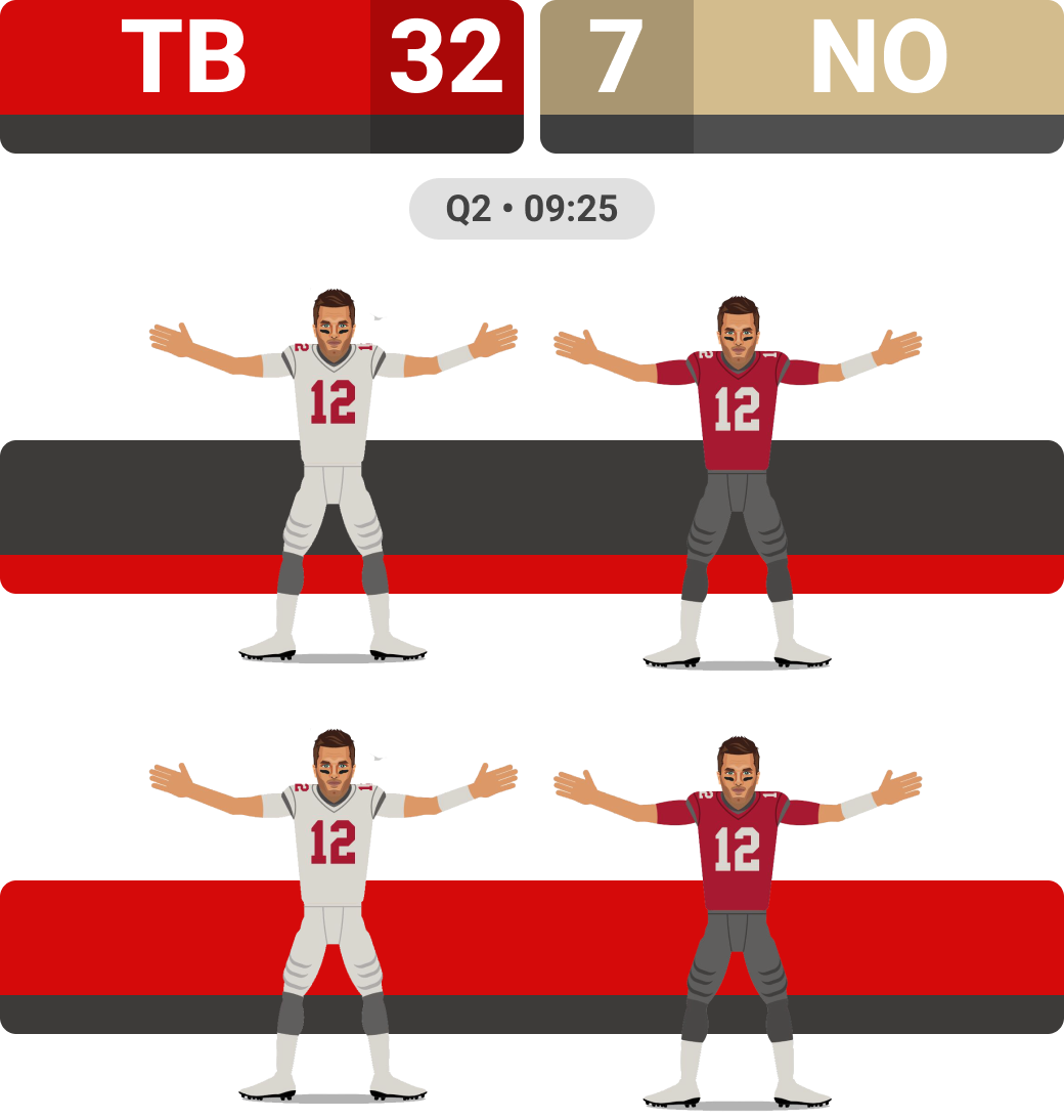 Once scorecard structure and template were created, we were able to focus on the finalized design and animation portion. I art directed each NFL character which was then drawn and rigged for animation by Sportsmanias with approval from NFLPA.